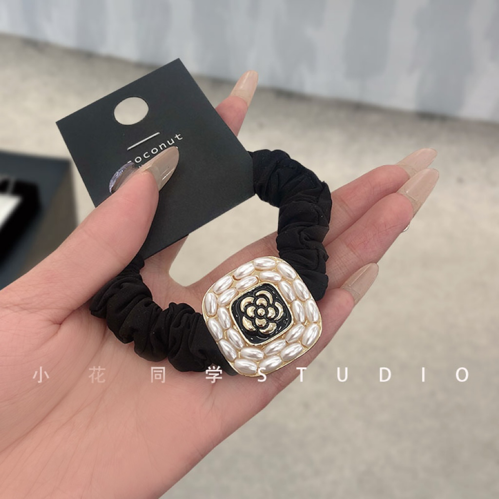 韩国发饰2025新款米白色米黄色小米粒仿淡水珍珠山茶花发圈发绳 - 小花同学饰品Studio
