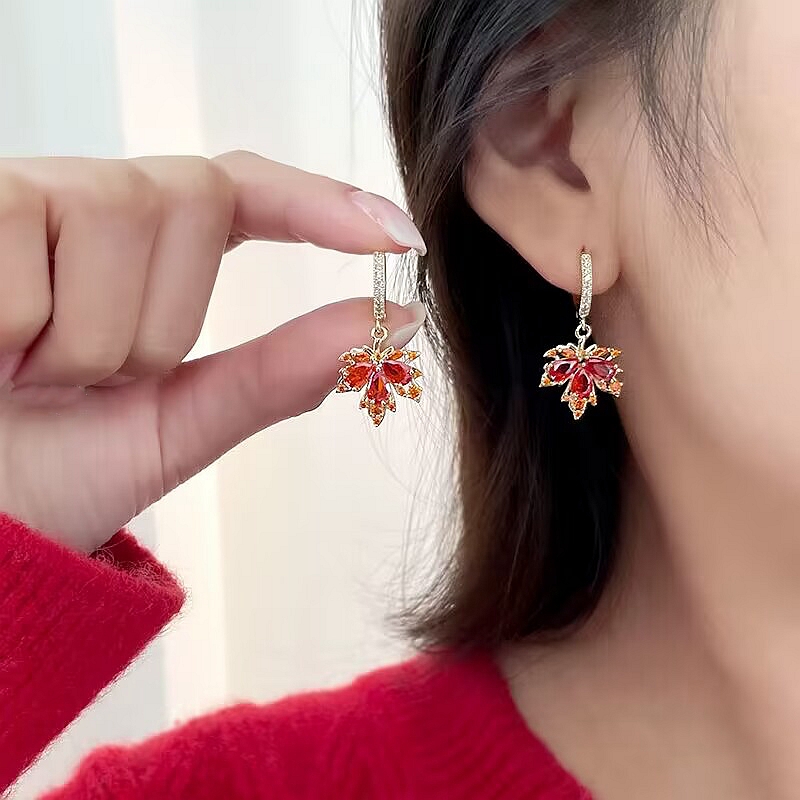 您的位置:他他商城  >   >  2025年小众设计感红色银针新年春节耳环植物树叶耳饰枫叶纯银耳钉