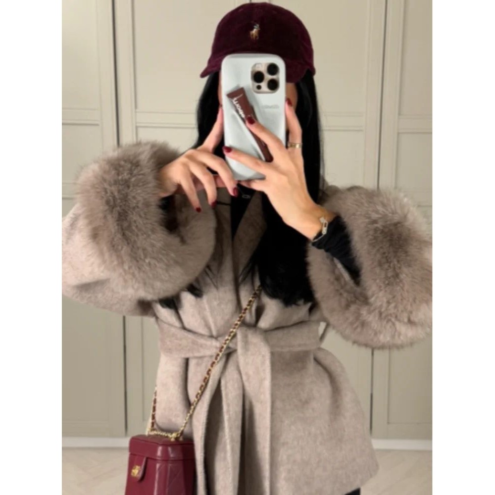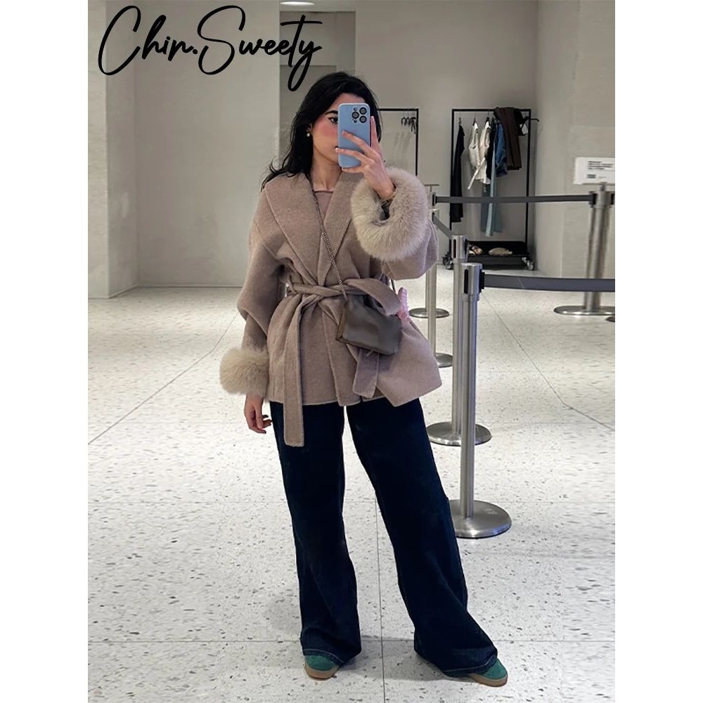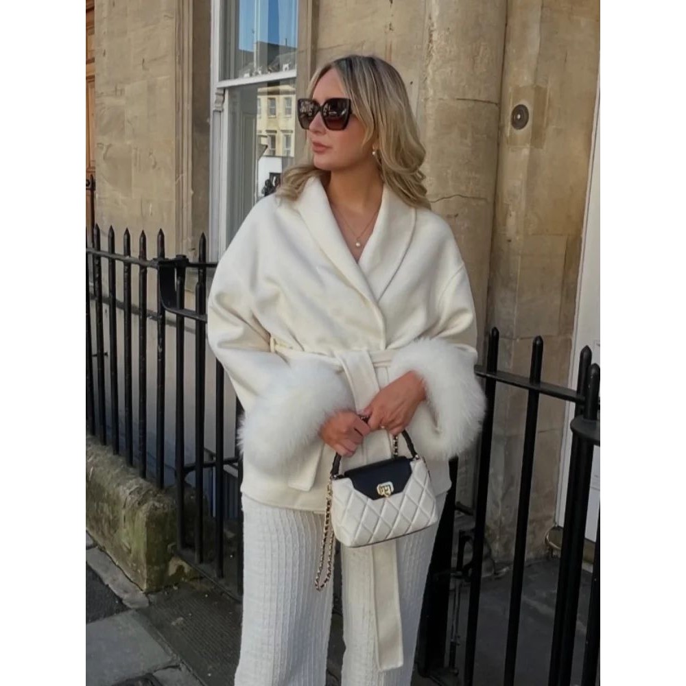 您的位置:他他商城  >   >  Elegant Lace Up Woolen Coats Women Solid Full Sleeve Turn-do
