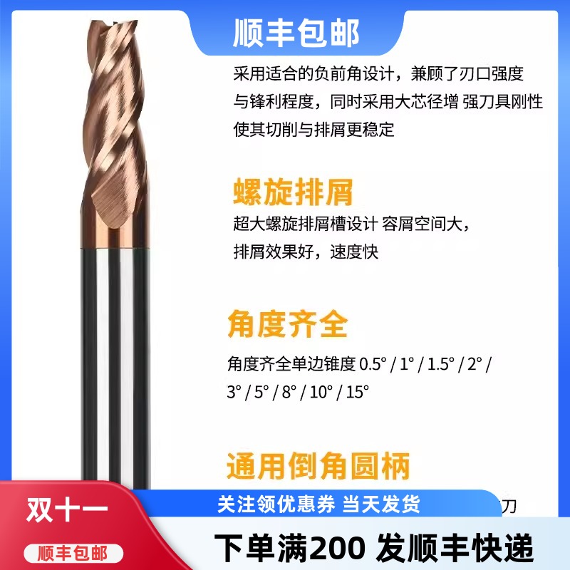 您的位置:他他商城  >   >  钨钢锥度铣刀斜度刀平底合金角度刀10 15 20°30度数控CNC倒角V型