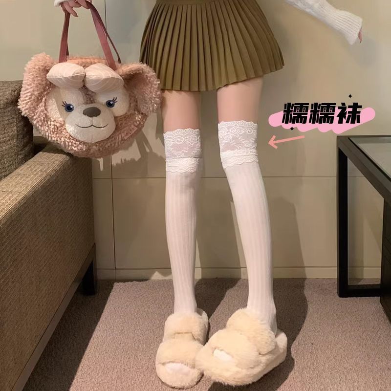 半截纯欲风性感秋天百搭过膝袜女生蕾丝边白色显瘦jk长筒靴大腿袜 - 猫呢