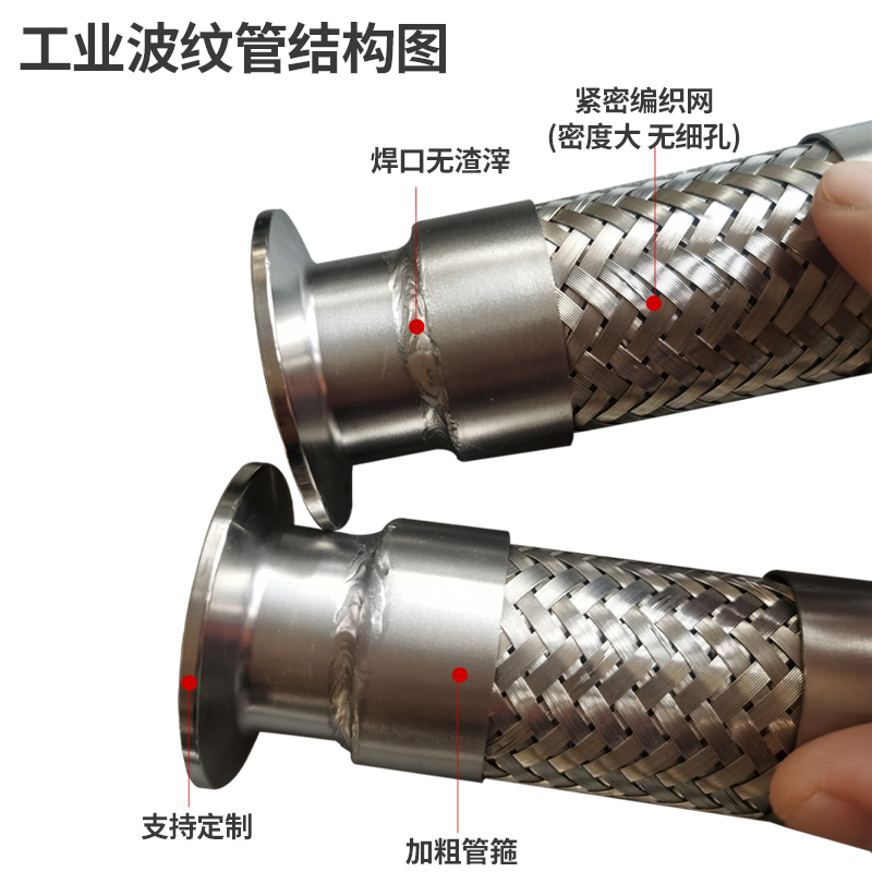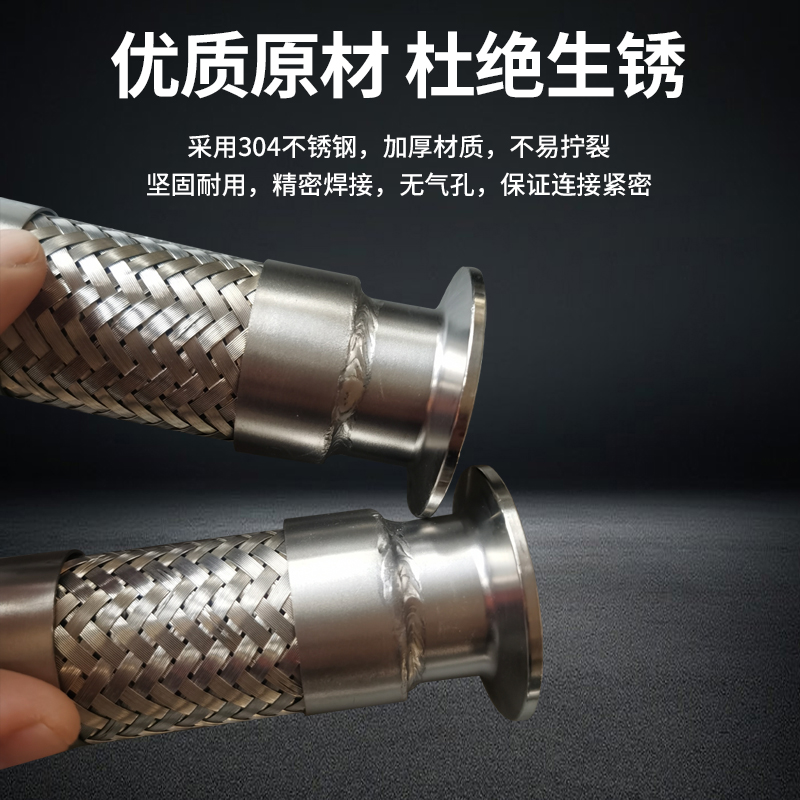 304不锈钢卡盘波纹管卫生快装软连接化工卡箍钢丝编织网金属软管 - 明希金属制品