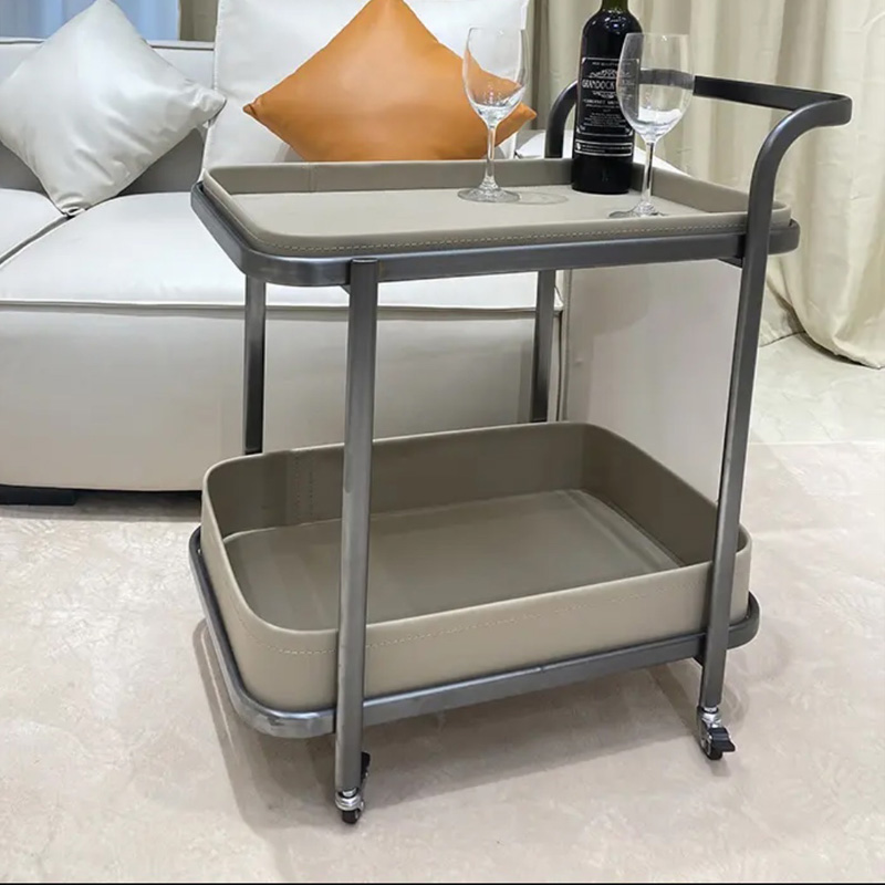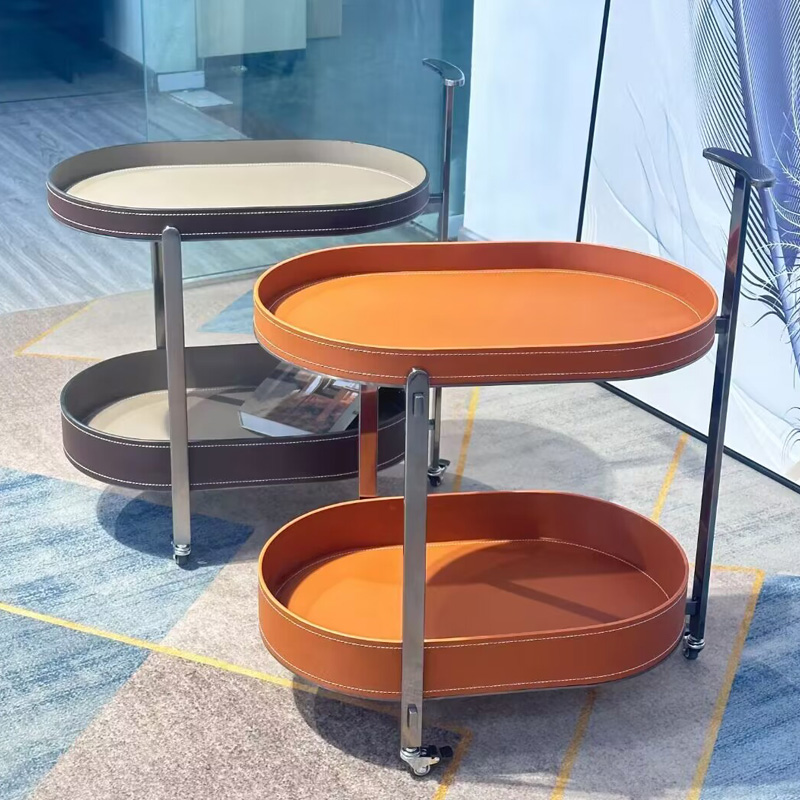 轻奢马鞍皮移动沙发边几小推车茶几客厅J家用角几床头柜带轮置物 - 书雅卓络企业店