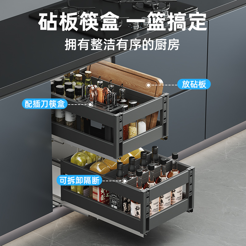 厨房窄柜铝合金调味拉篮橱柜小规格双层防锈多功能调料篮开门抽屉