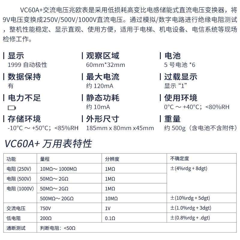 伊万厂家VC60A+绝缘电阻仪500V高压高阻数字兆欧表 - yxswjdaueo的小店