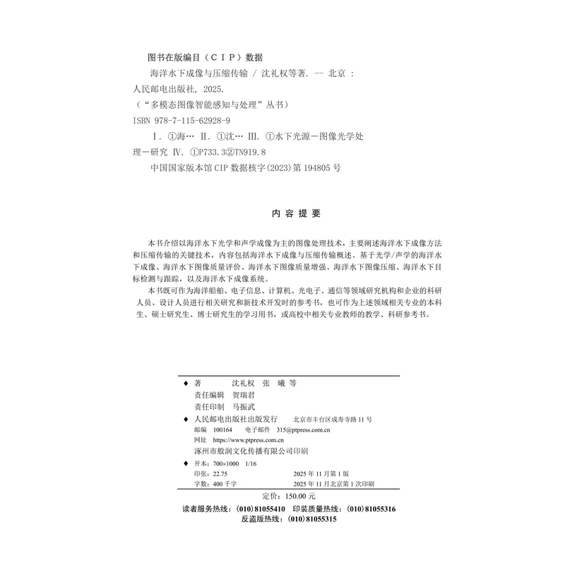 海洋水下成像与压缩传输沈礼权 张曦 等图形图像/多媒体(新)人民邮电出版社新华书店正版 - 菲尼克斯图书专营店