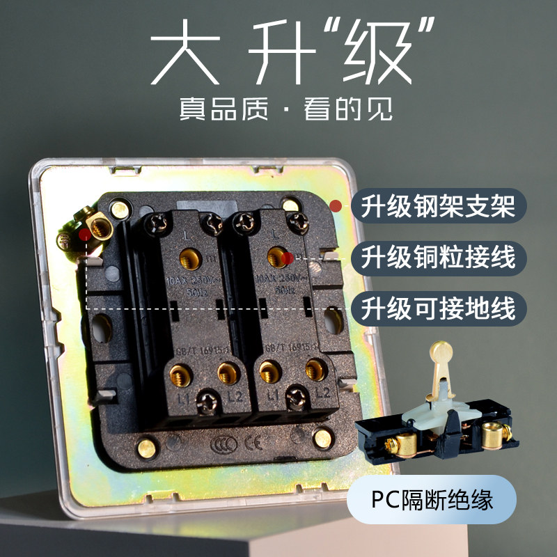 超薄复古美学开关86型插座不锈钢面板烤漆哑白黄铜拨杆单开极简风