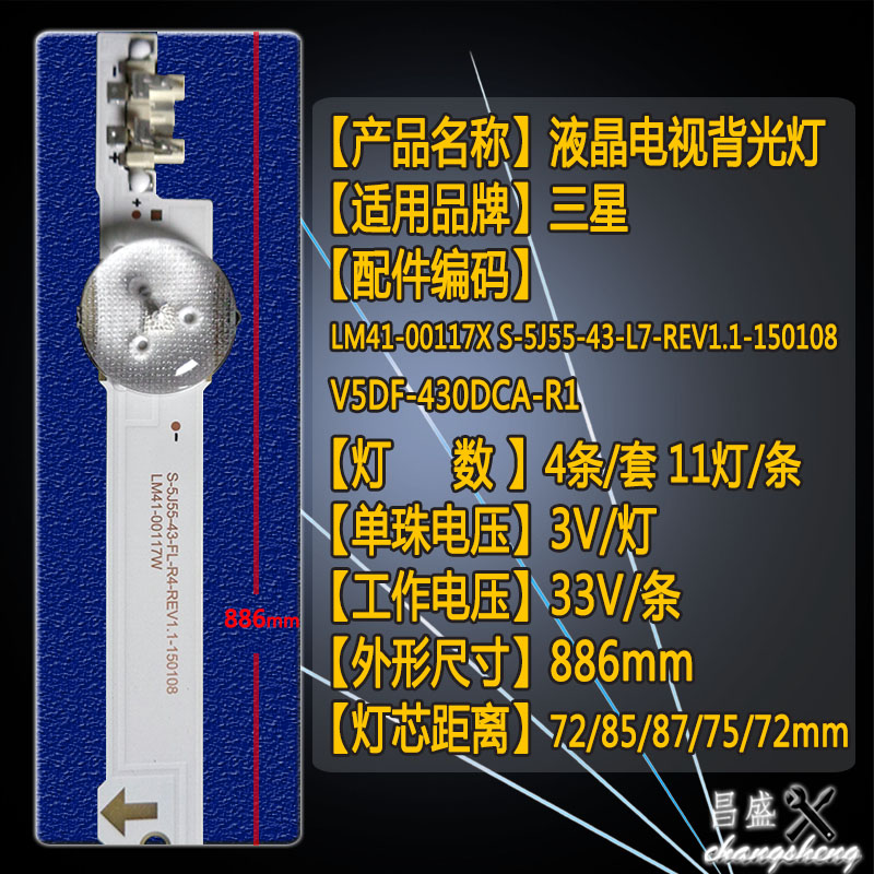 适用三星UE43J5500AK UE43J5600 43J5502灯条 V5DF-430DCA-R1背光 - 昌盛电器配件
