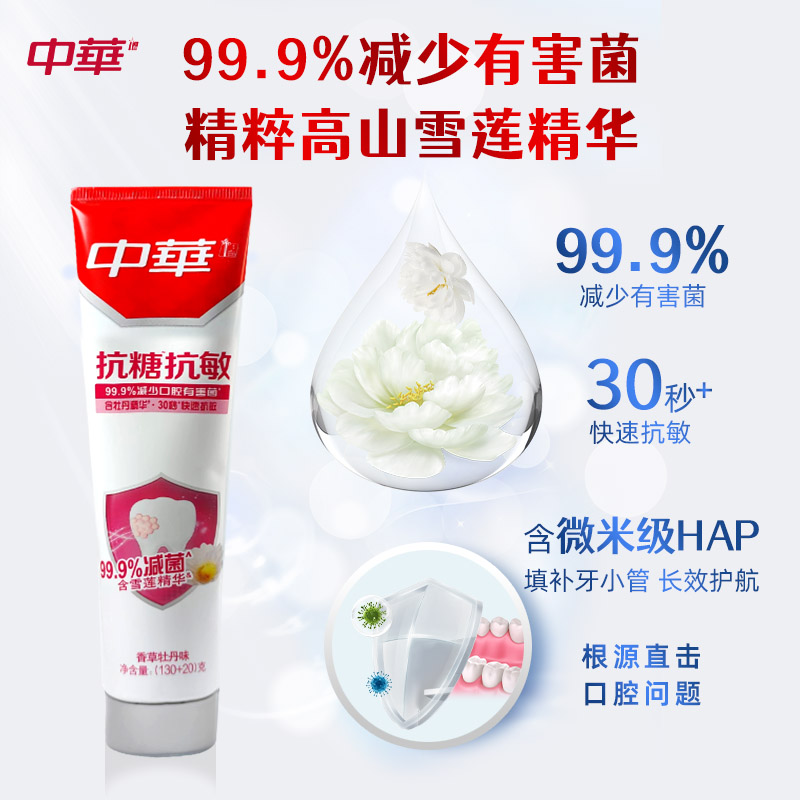 中华抗糖减菌牙膏亮白牙齿清新口气修护抗敏感护龈清洁防蛀健齿 - 牙博士家居专营店