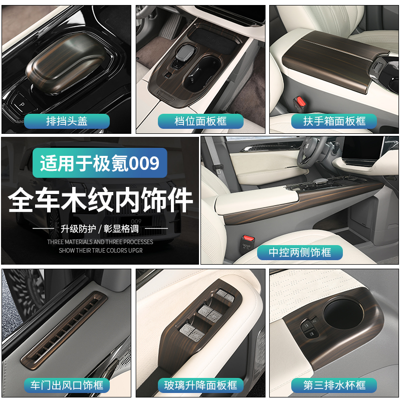 适用极氪0c09内饰改装件中控台面板汽车专用桃木纹排档框用品装饰 - tb1611138175
