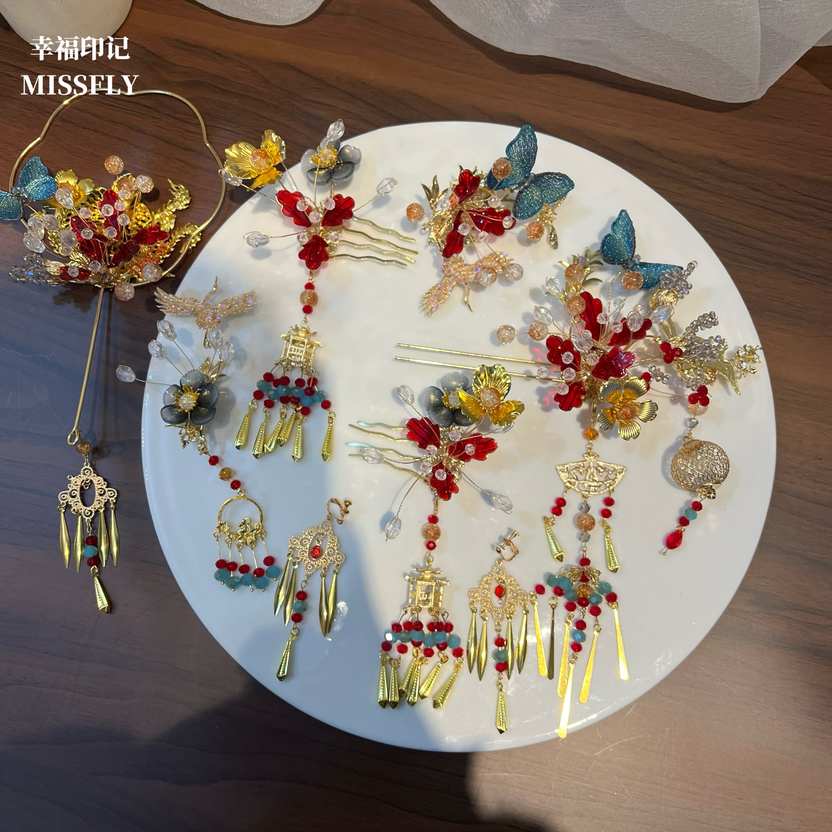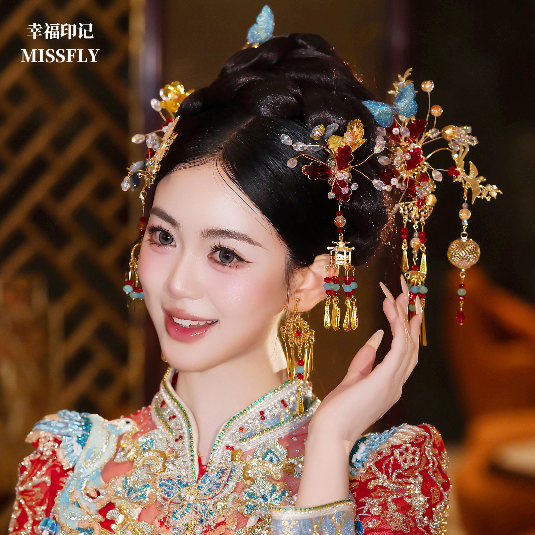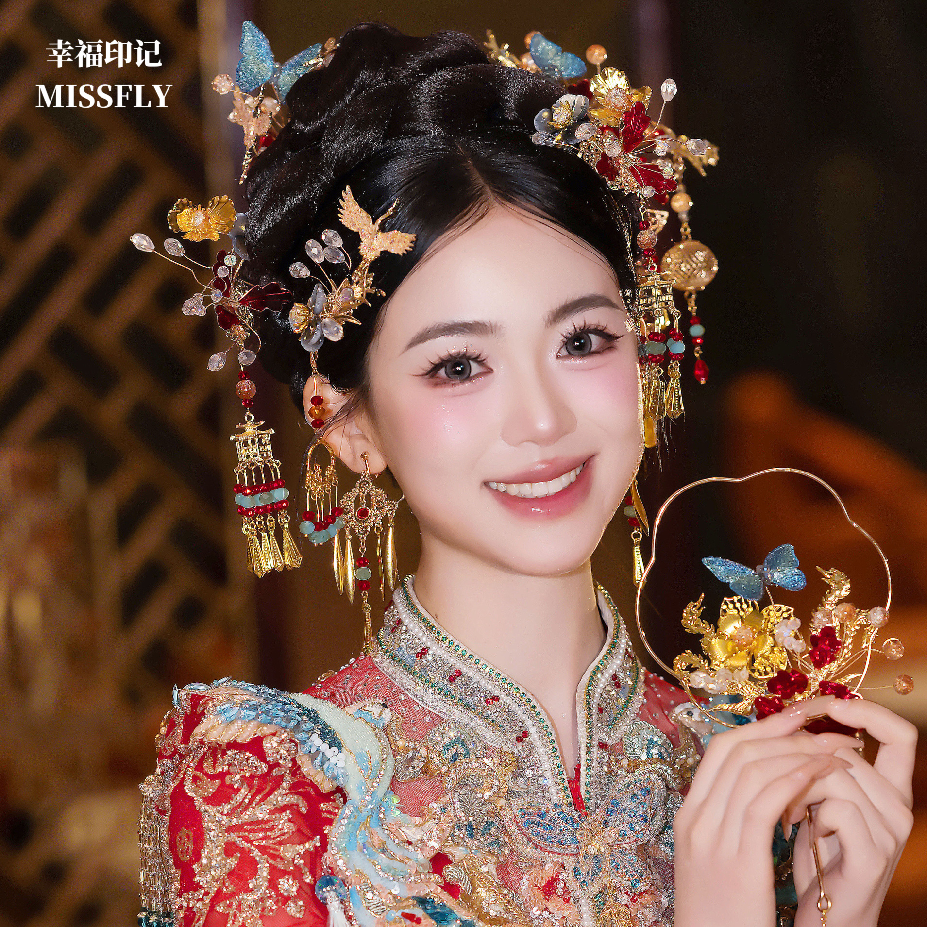 您的位置:他他商城  >   >  2025新中式新娘金红蓝头饰秀禾龙凤褂马面裙旗袍汉服发饰灯笼步摇