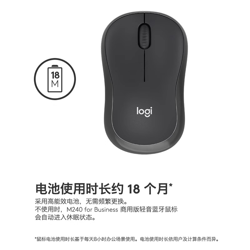 罗技M240商用版无线蓝牙鼠标办公简约舒适轻音便携笔记本电脑家用 - 罗技林丰专卖店