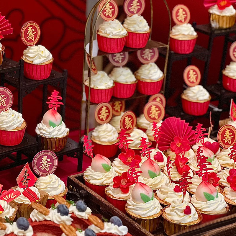 老人祝寿蛋糕装饰插牌纸杯父亲节爸爸小福字寿字插件甜品台摆件 - 80小资蛋糕装饰
