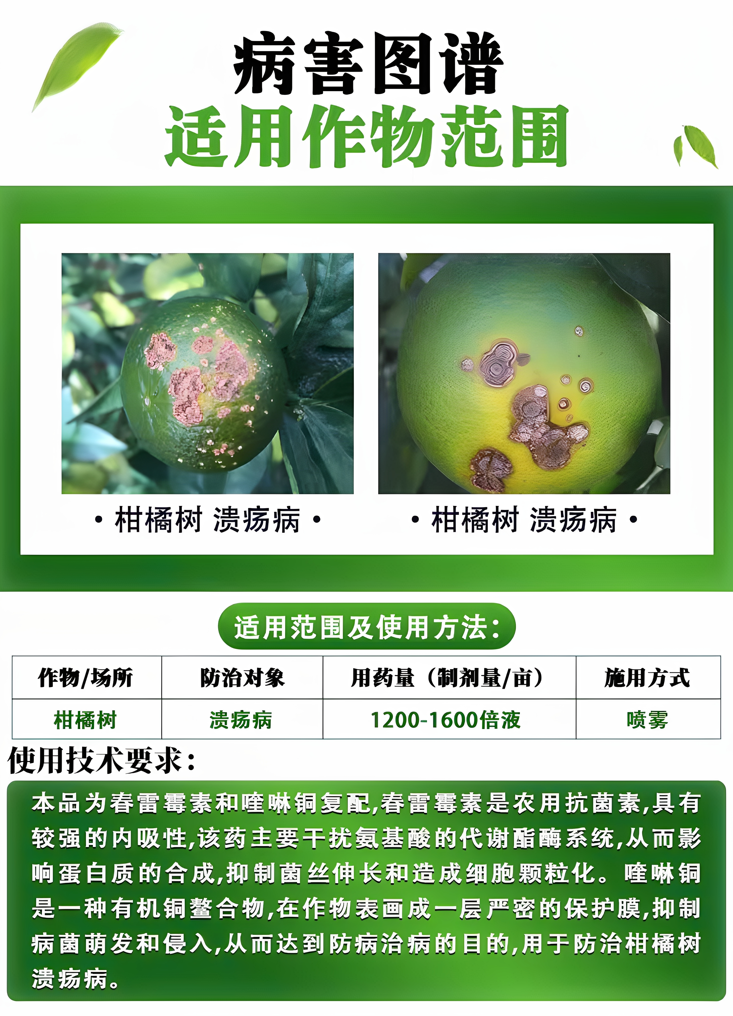 45%春雷霉素喹啉酮铜柑橘溃疡病专用药细菌性角斑病杀菌剂农药