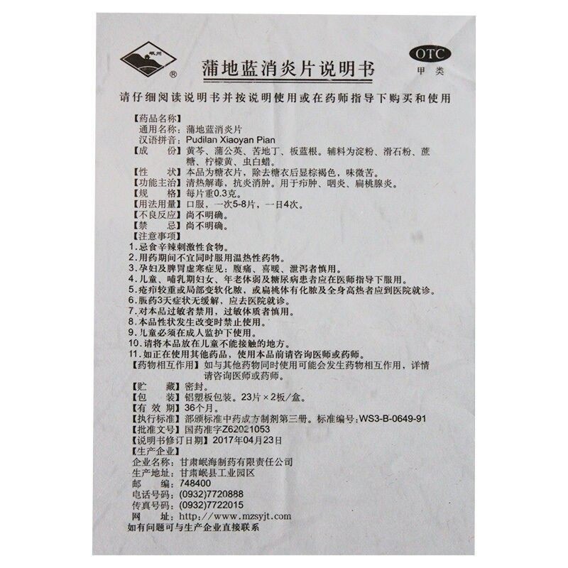 岷州 蒲地蓝消炎片 300mg*46片/盒 清热解毒抗炎消肿本品疖肿腮 - 都会好大药房旗舰店