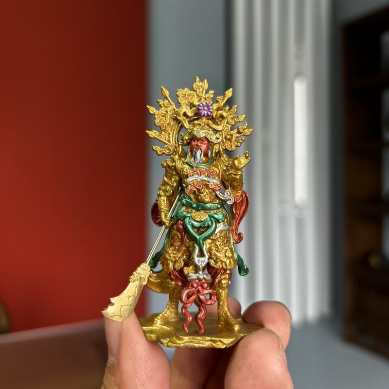 崇宁真君铁佛寺关公造像纯铜实心釉彩手绘车载办公室案头小摆件 - tb5184589478