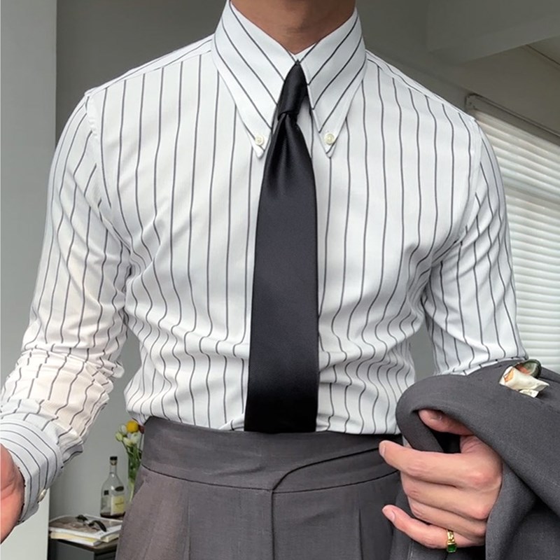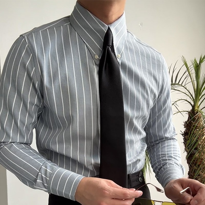您的位置:他他商城  >  男装  >  男士休闲商务长袖条纹衬衫意式复古绿纽扣长尖领衬衣时尚个性修身