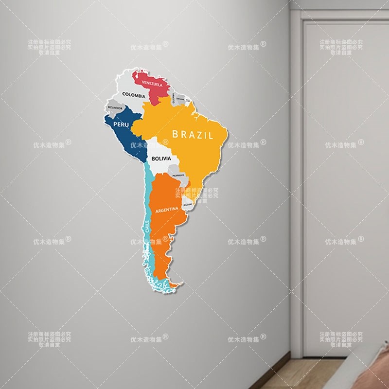 南美洲地图客厅沙发背景墙面装饰画卧I室床头挂画自粘防水可定制 - 银辰店商城