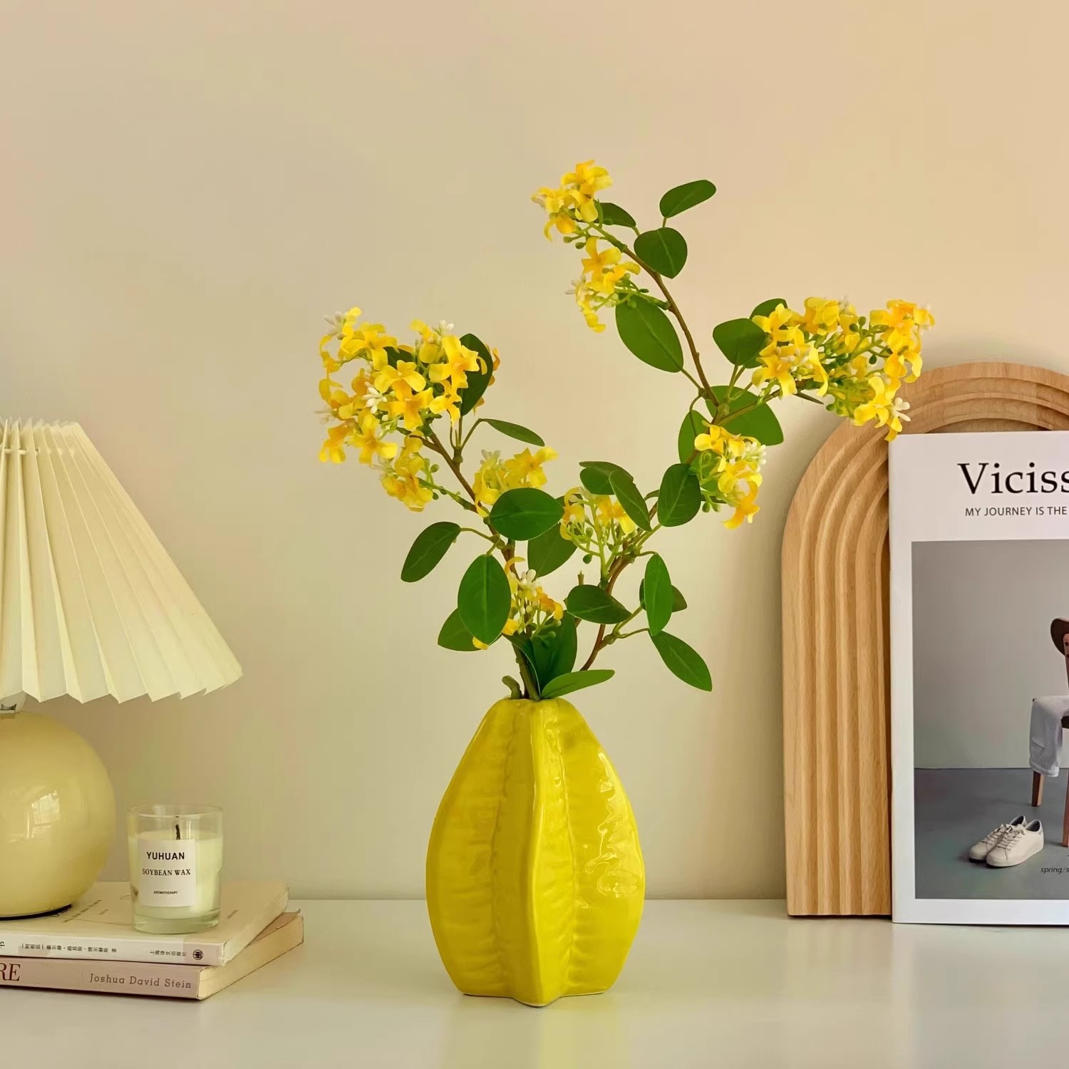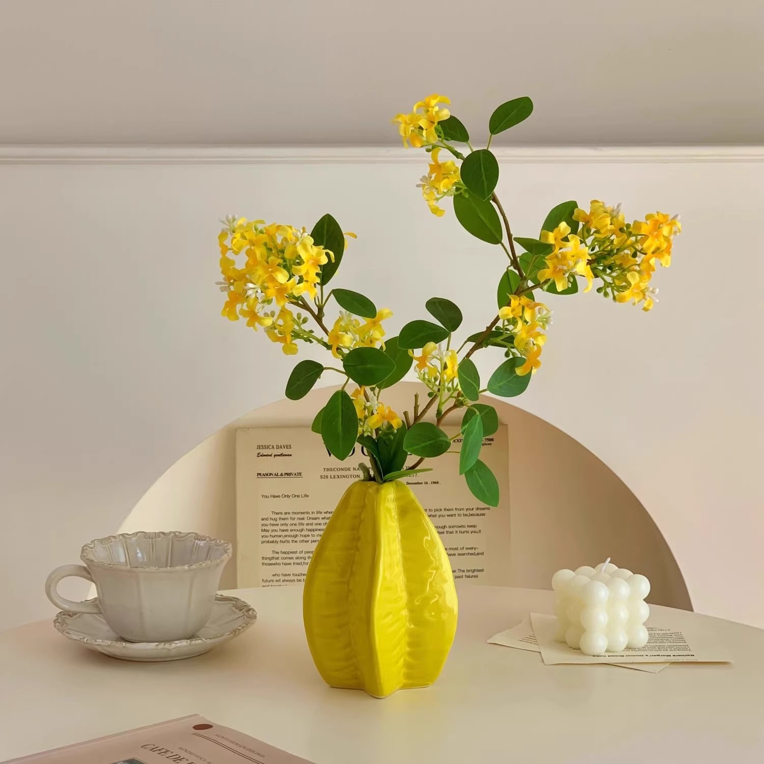 新款家居装饰仿真花无叶桂花枝摄影道具仿真植物假花黄金桂千里香 - 绿野家居园艺