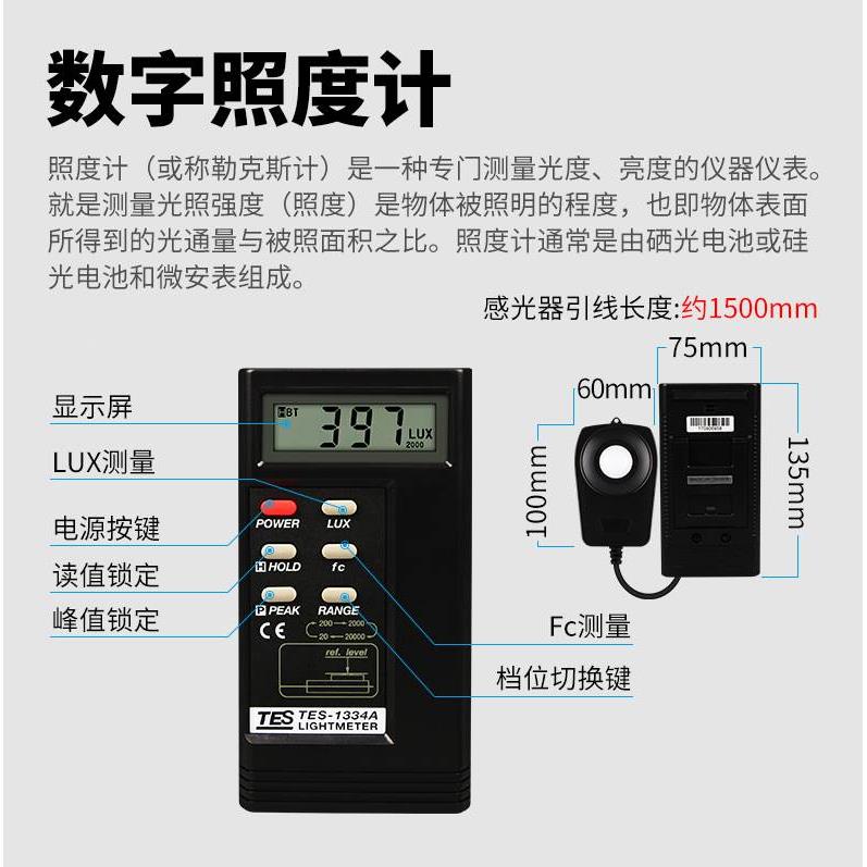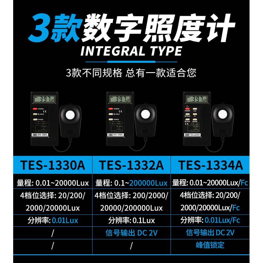 台湾泰仕tes1330A照度仪高精度照度计测光仪光照度测试仪tes1332A - 灵利优选店的小店
