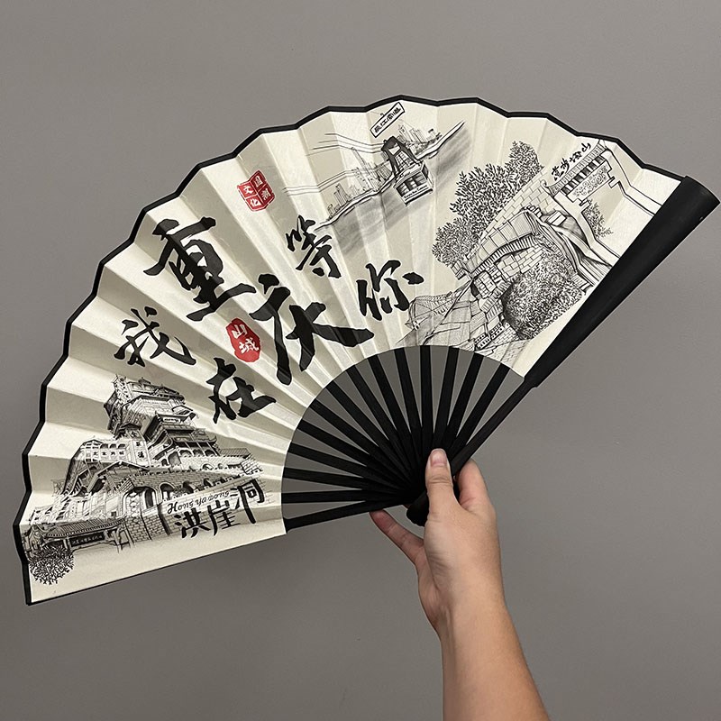 重庆拍照折扇方言地o标礼物夏季男女式绢布扇洪崖洞李子坝双面折
