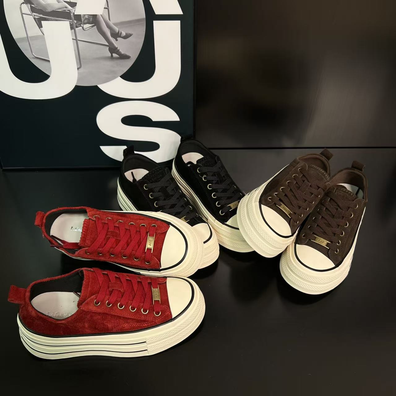 您的位置:他他商城  >   >  欧洲站厚底红色帆布鞋2025秋季新款圆头磨砂皮松糕鞋休闲板鞋女