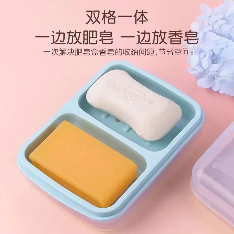 家用卫生间双体带盖防水透明皂盒皂托双格肥皂盒塑料沥水款香皂盒 - 禾风集家居生活