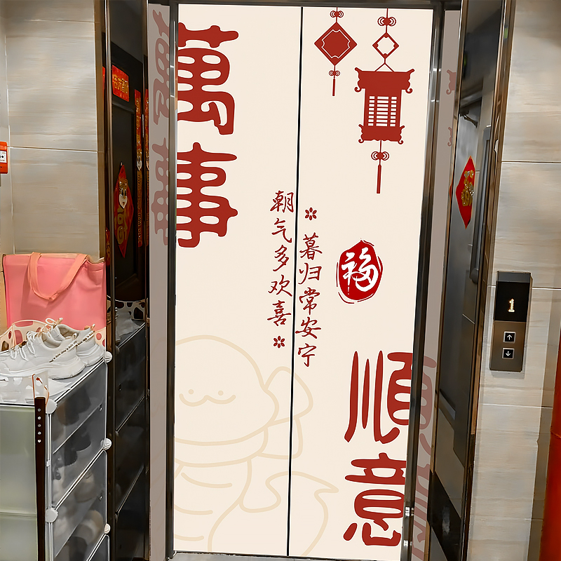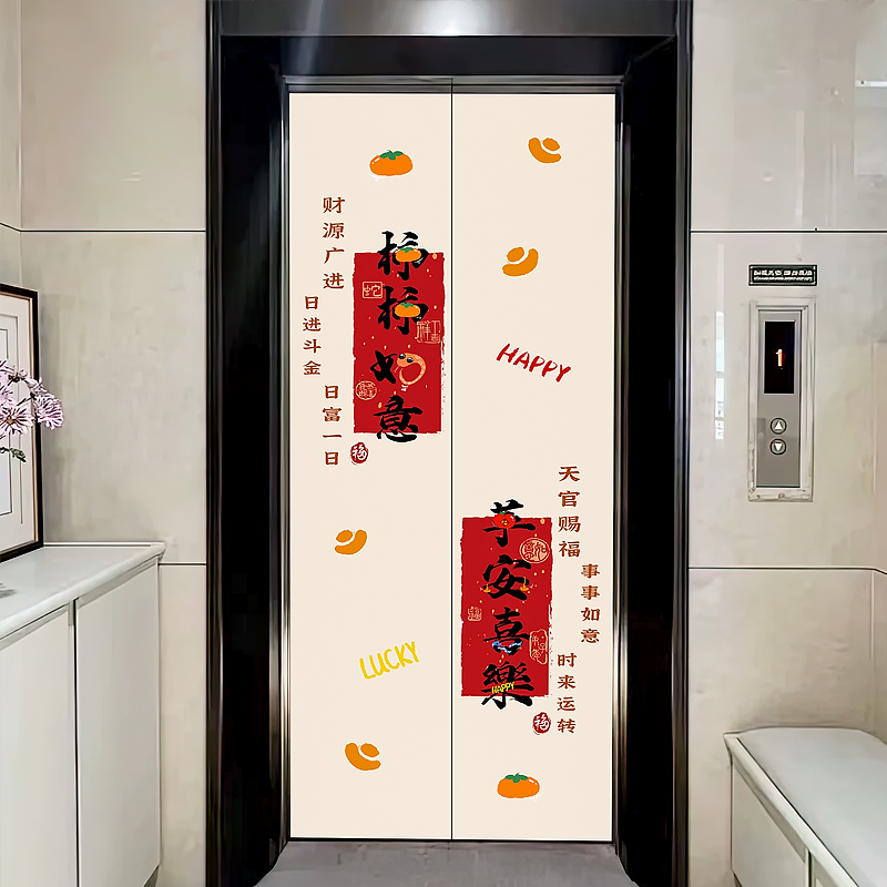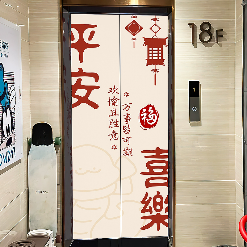 入户电梯门磁吸贴纸装饰新年门口玄关中式高级感定制电梯门贴纸画 - 图乐猫旗舰店