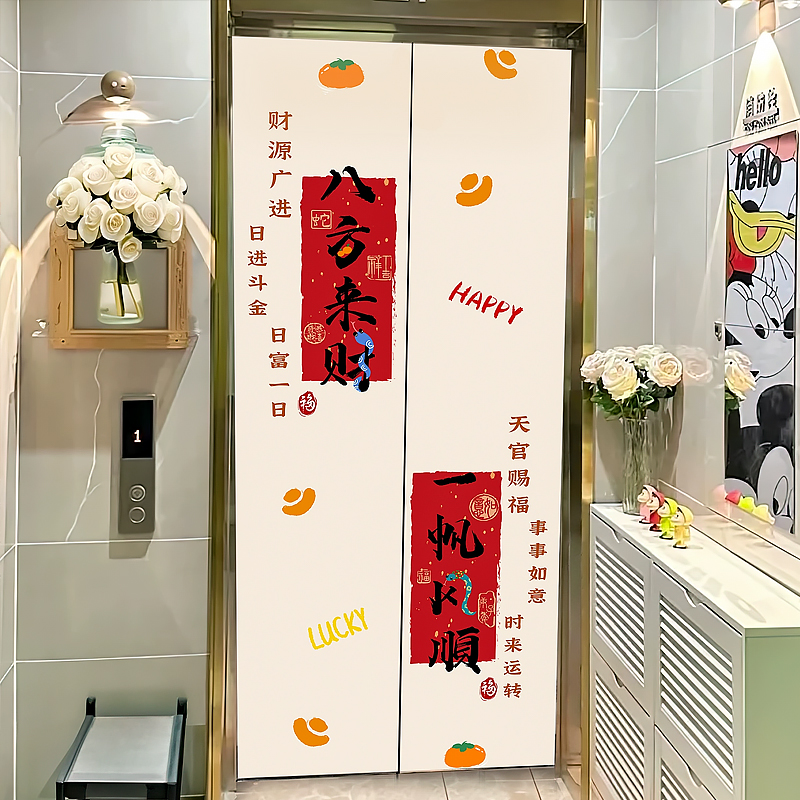 入户电梯门磁吸贴纸装饰新年门口玄关中式高级感定制电梯门贴纸画
