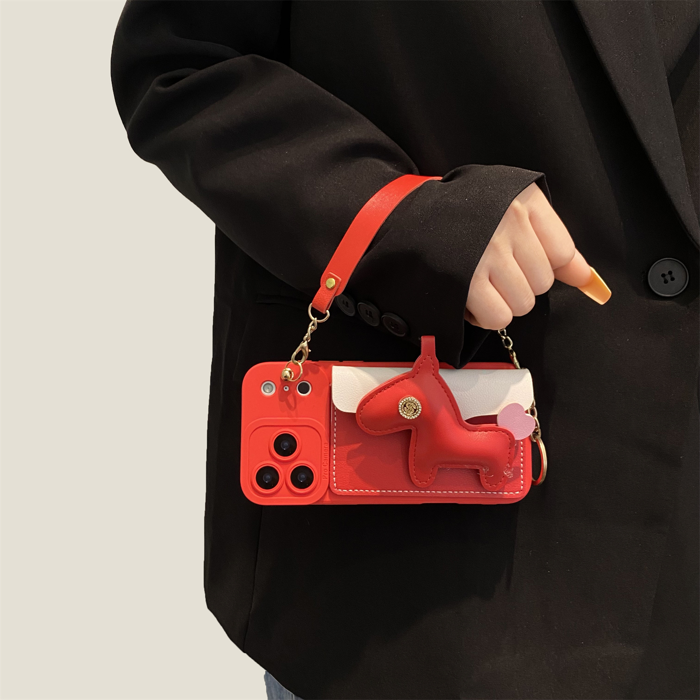 红色小马零钱包适用opporeno15手机壳reno14/13/12pro高档皮质reno11个性findx9/8斜挎A6可背A5/A3全包A2女款 - 韩夏福瑞杰专卖店