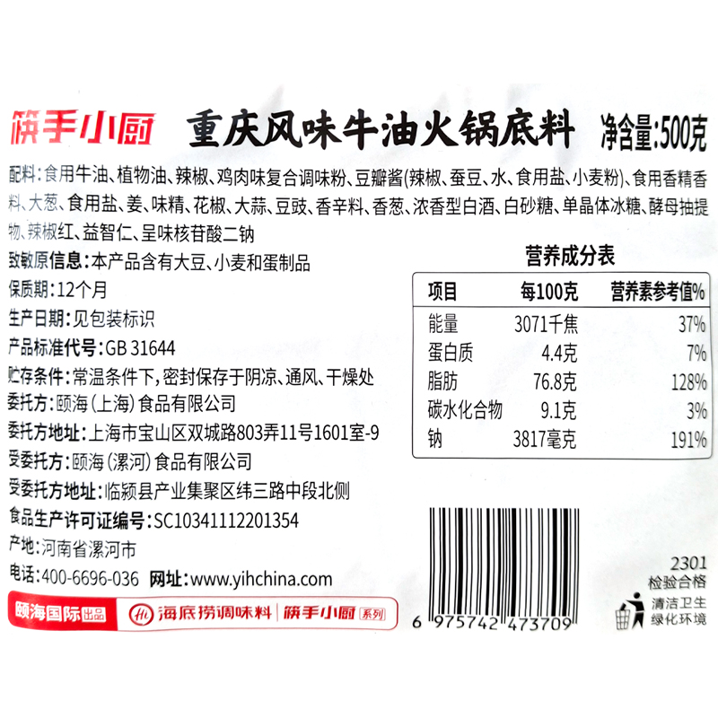 您的位置:他他商城  >  美食  >  海底捞牛油火锅底料500g*20袋商用餐饮装四川串串香麻辣烫料