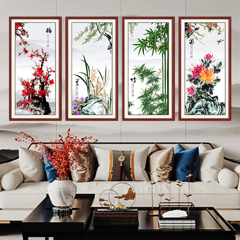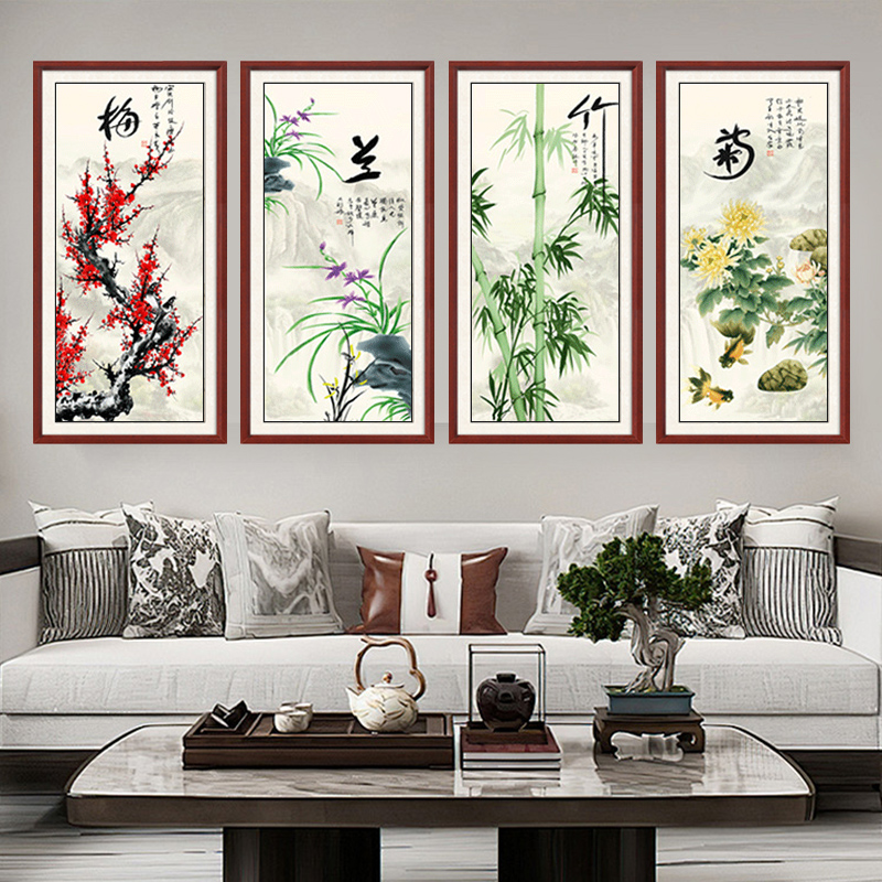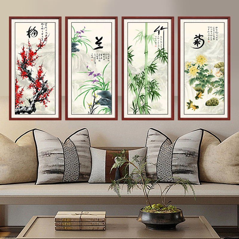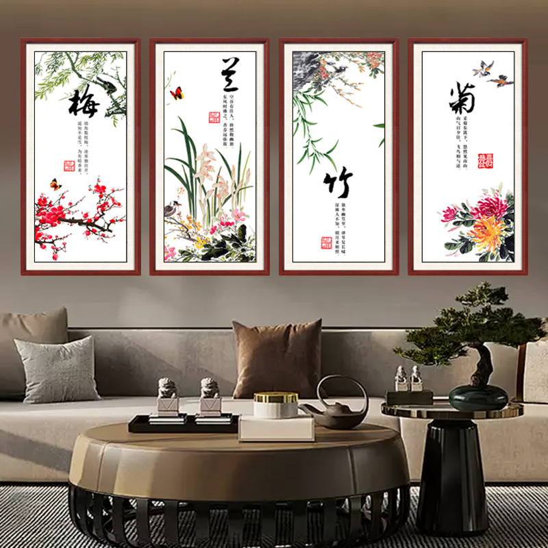 梅兰竹菊客厅挂画四条屏新中式沙发背景墙装饰画字画中式茶室壁画 - 天尚喷画旗舰店