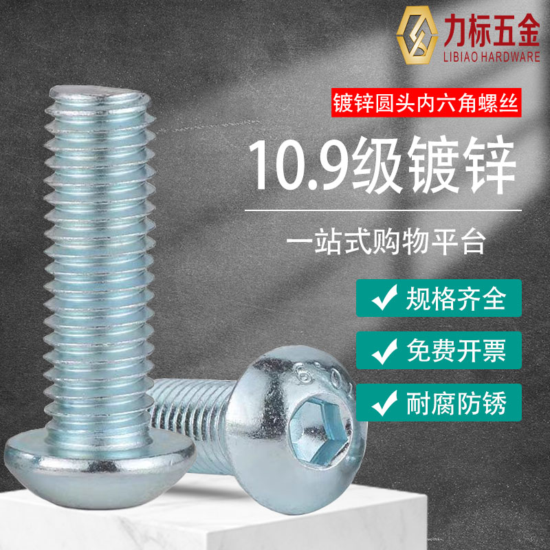 10.9级镀锌盘头内六角螺丝 圆头圆杯平圆头螺钉M3M4M5M6M8M10M12 - 力标五金标准件