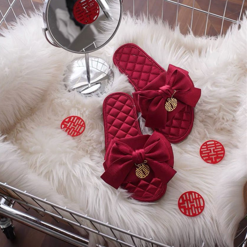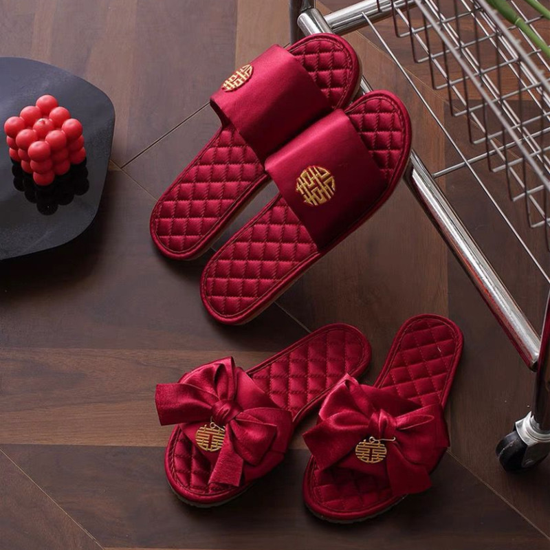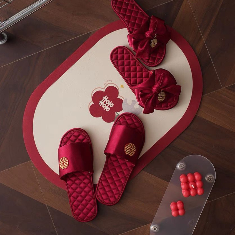 抖音小红书结婚拖鞋红色防滑春夏秋冬四季陪嫁新郎新娘 - 晴天纸杯官方企业店