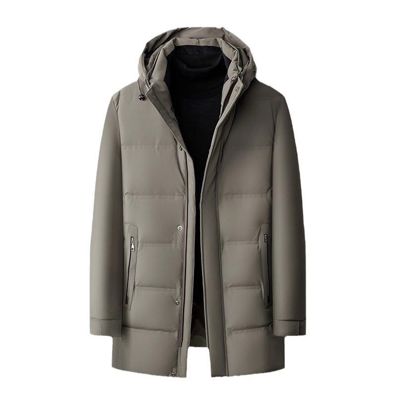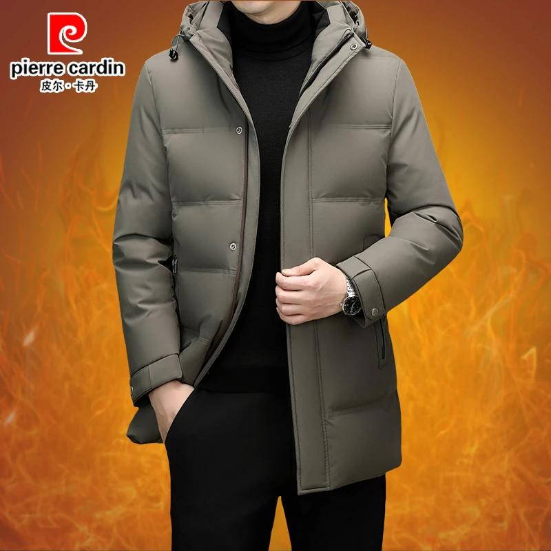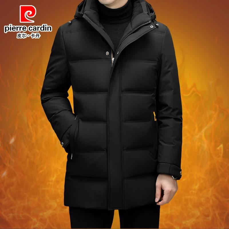 皮尔卡丹男士中长款白鸭绒羽绒服中年时尚商务休闲可拆卸连帽外套 - 皮 尔 卡 丹精品男装