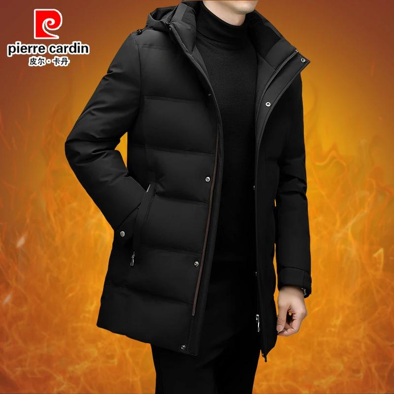 皮尔卡丹男士中长款白鸭绒羽绒服中年时尚商务休闲可拆卸连帽外套