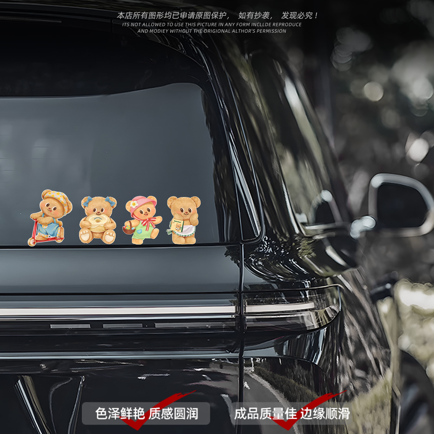 黄油小熊汽车车窗玻璃创意防水装饰贴纸电动摩托车划痕遮挡贴P235