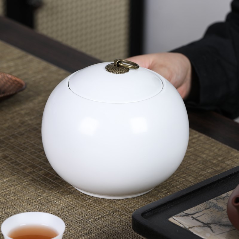 茶叶罐陶瓷密封罐大号黑白圆形醒茶普洱白茶存储茶罐防潮绿茶红茶 - 启乐设计馆2