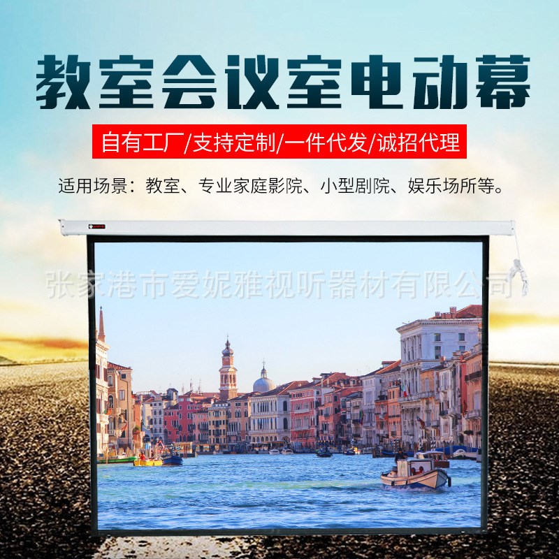 家庭影院教室会议室电动幕100寸4:3幕布 白塑玻纤舞台幕布 - 聪曼百货