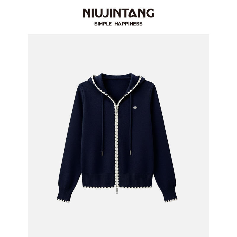 【林小雅专享】NJT秋冬时尚休闲显瘦连帽设计感洋气针织毛衫MJ228 - 牛筋糖女装服饰官方店