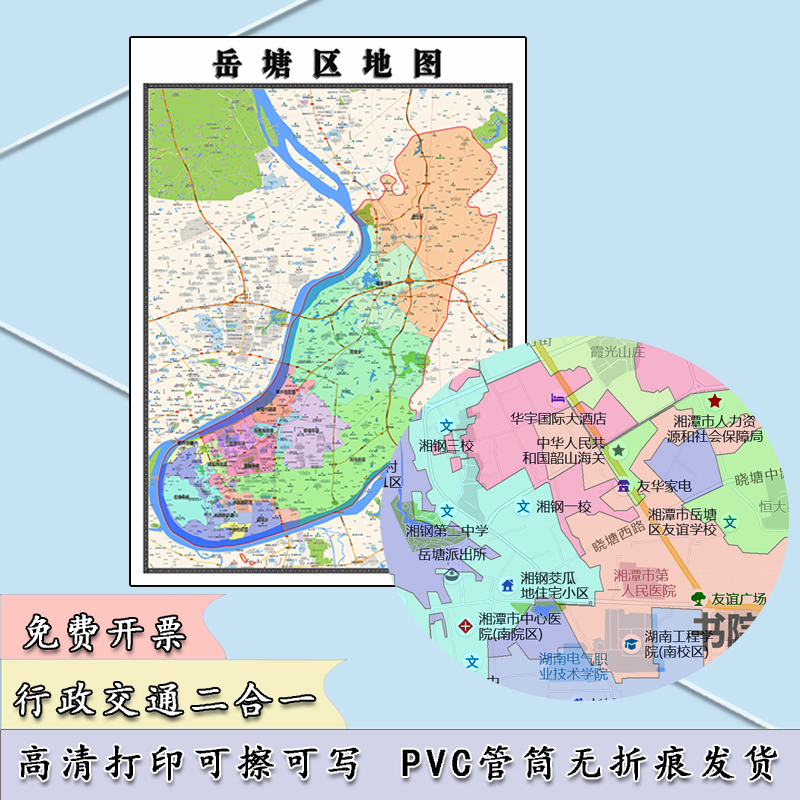 岳塘区地图1.1m现货防水高清贴图湖南省湘潭市行政交通区域划分 - 源本穑地图服务中心