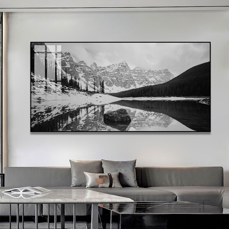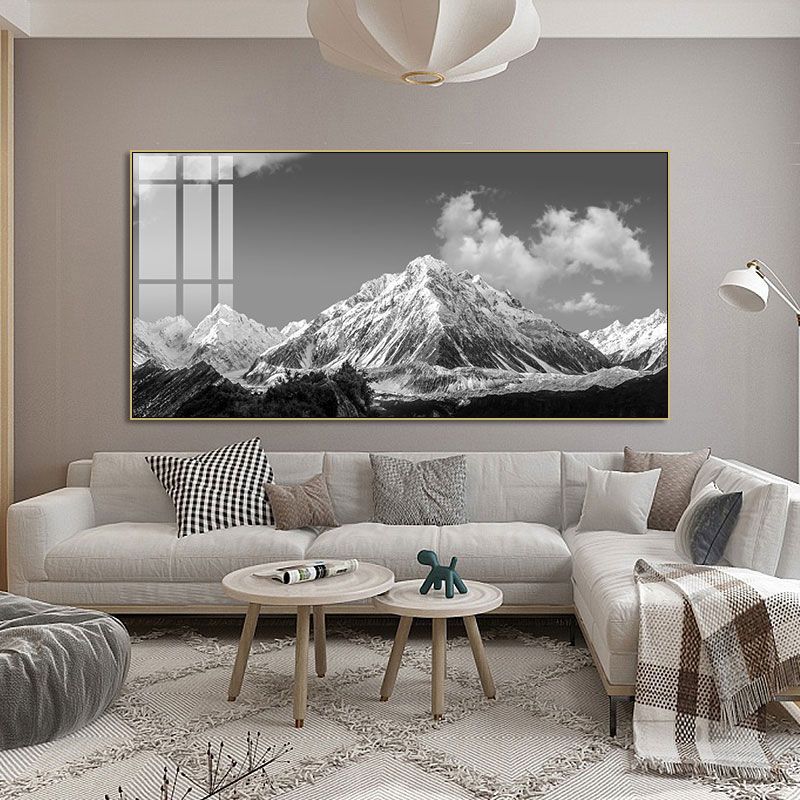 黑白灰摄影作品装饰画客厅沙发背景墙背有靠山梅里雪山风景挂画