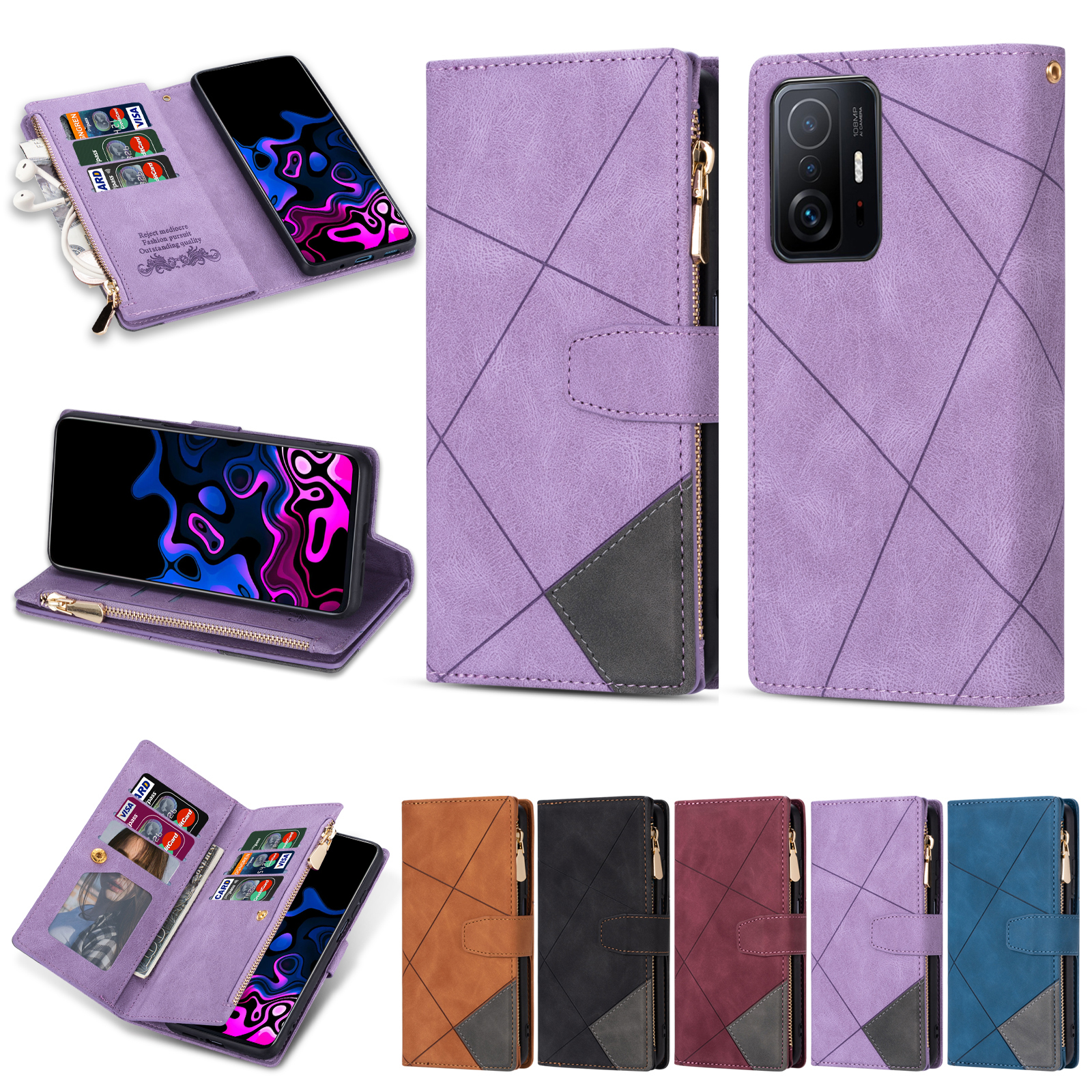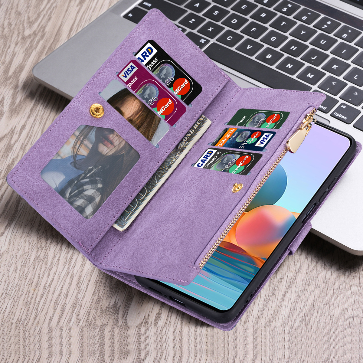 适用于小米11T手机壳拉链收纳零钱卡包米11保护套10TPro防摔软套红米NOTE10翻盖式NOTE11PRO拼接K40复古皮质 - 浪险数码手机壳店