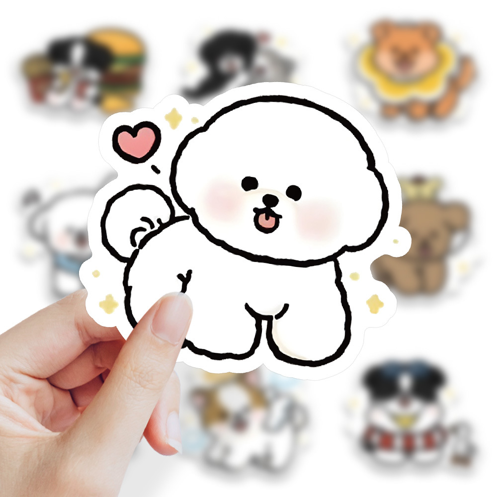 72张呆萌小修狗卡通可爱小动物贴纸桌面装饰电脑平板水杯防水手账 - 沃比心