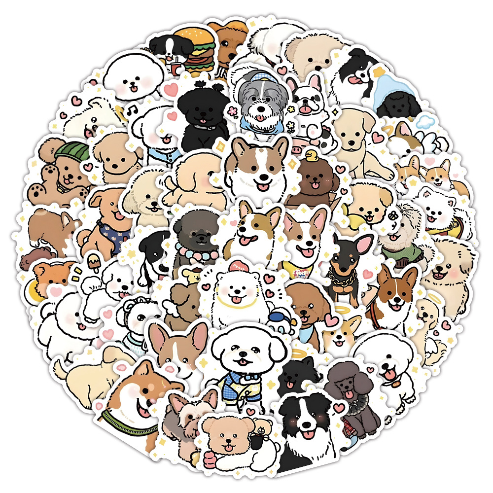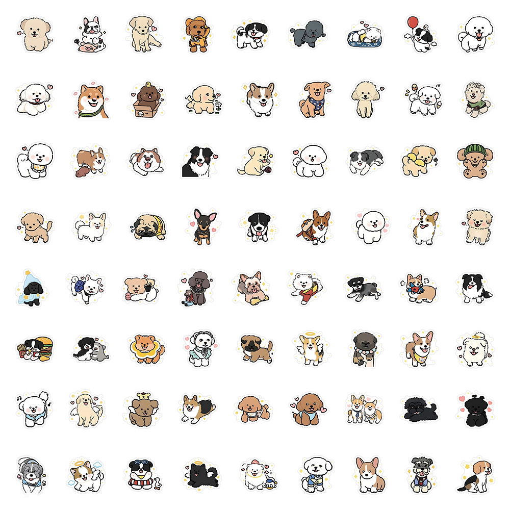 72张呆萌小修狗卡通可爱小动物贴纸桌面装饰电脑平板水杯防水手账
