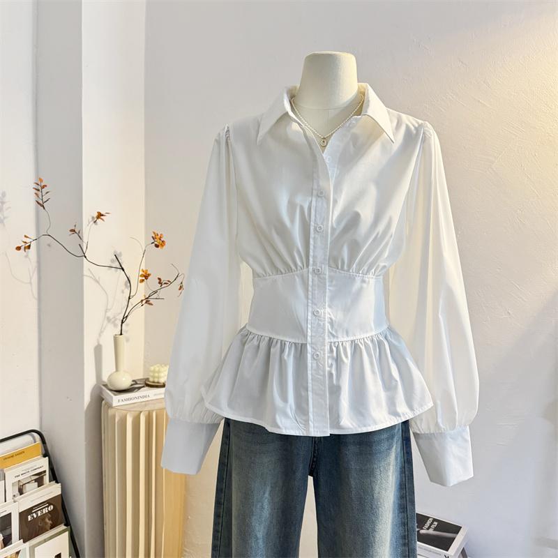 您的位置:他他商城  >   >  法式收腰白色衬衫女2025春新款显瘦设计感荷叶边长袖衬衣小衫上衣