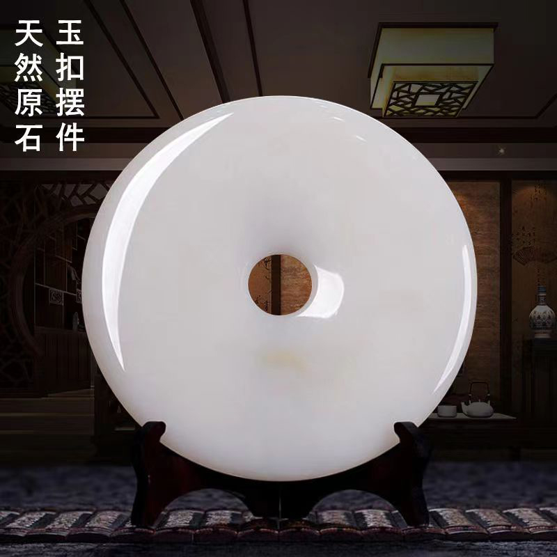 天然玉石平安扣玉璧和氏璧客厅酒柜玄关博古架摆件摆件开业乔迁礼 - 雁阵寒空商城
