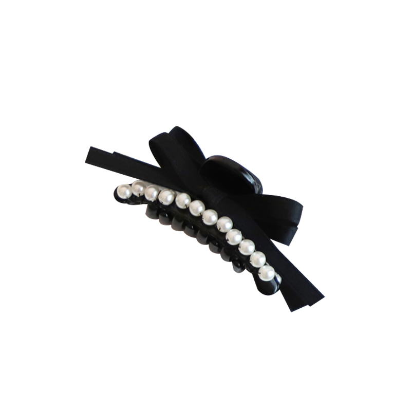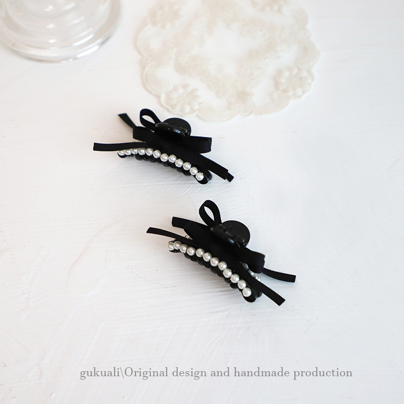 gukuali原创珍珠蝴蝶结抓夹鲨鱼发夹子发卡头饰发饰女百搭短发黑 - GUKUA LI 小姐设计品牌