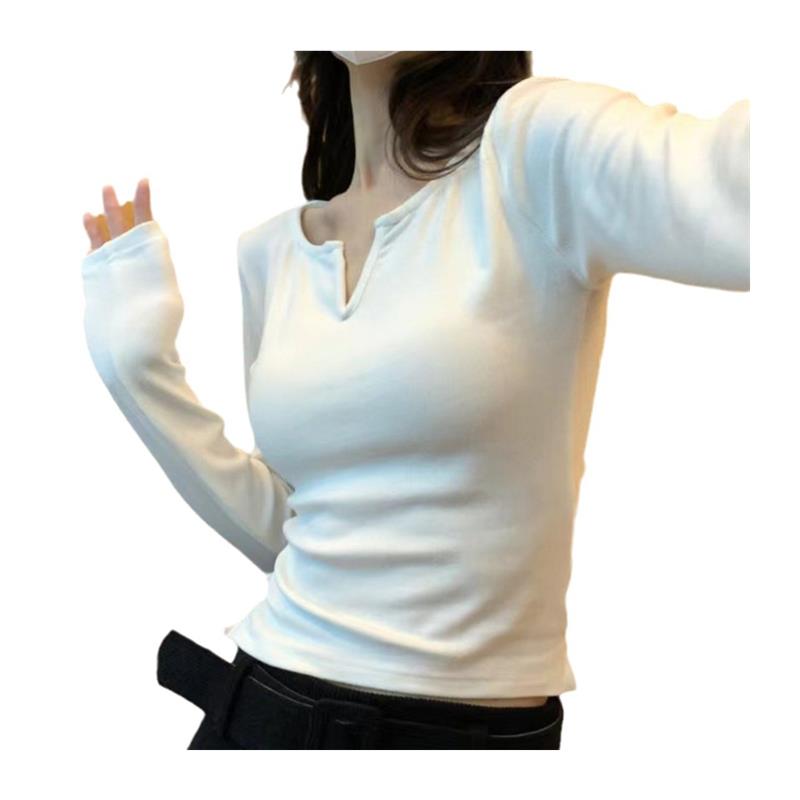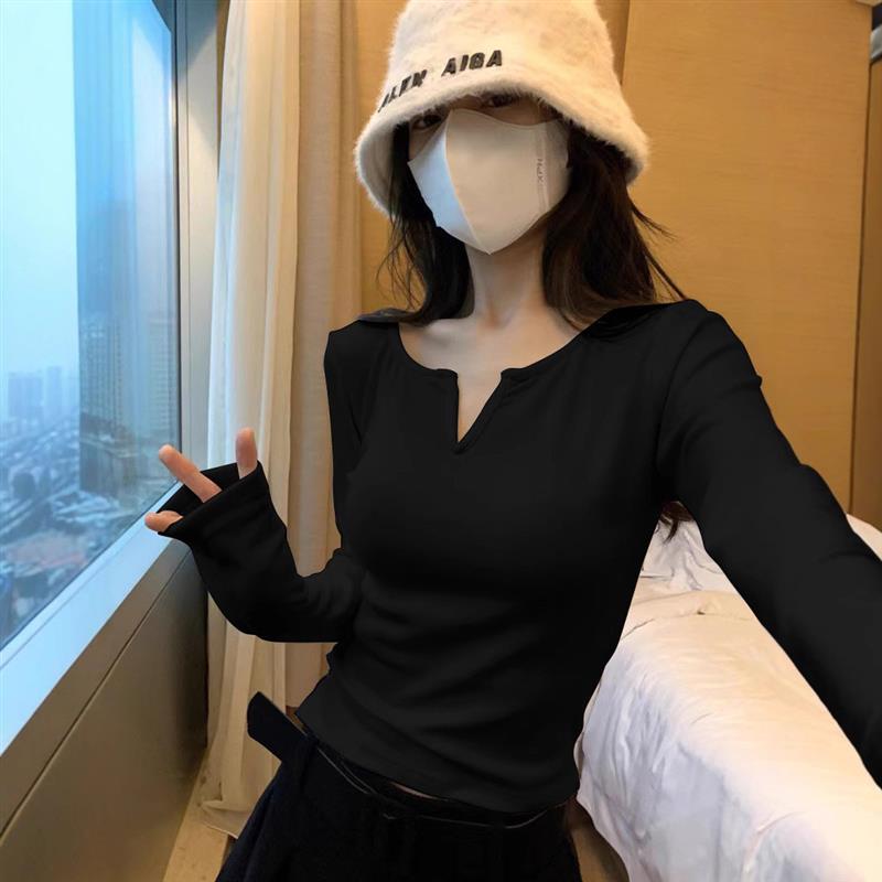 设计感V领德绒打底衫女2025秋冬内搭磨毛保暖小衫短款修身上衣潮 - 小鱼服饰小店