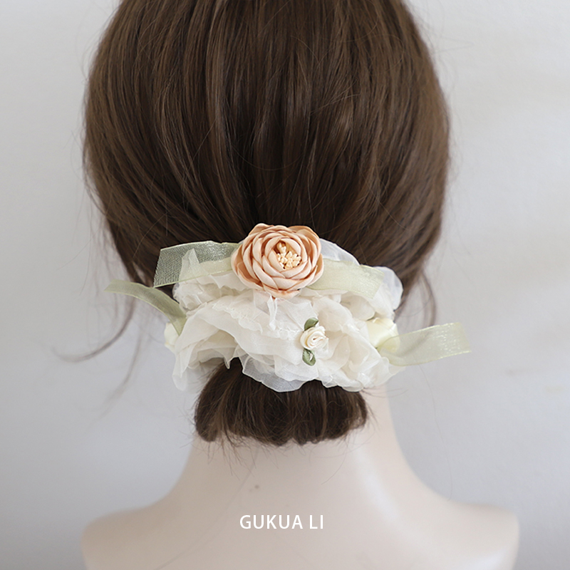 GUKUALI原创 春季新款小花网纱大肠发圈日常百搭扎头发发绳发饰 - GUKUA LI 小姐设计品牌